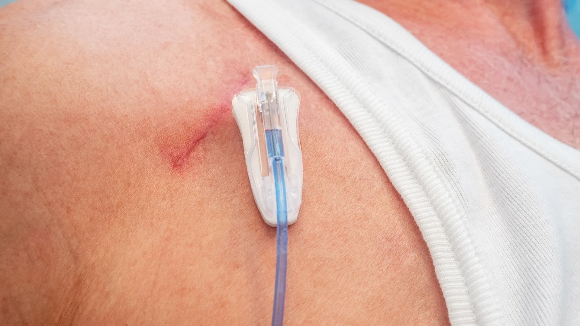 Both tunneled catheters and implantable ports provide long-term venous access for patients undergoing certain medical treatments. However, a tunneled catheter is a soft, flexible tube that is threaded into the appropriate vein, typically through an incision point near the neck or chest. It features a cuff that helps secure it in place once new tissue grows (in about three to four weeks) and one or more external tubes that exit the skin near the entry point.